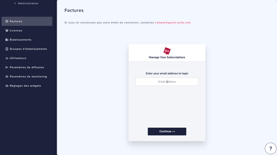 Vous pouvez retrouver vos facture directement depuis votre espace "Administration" de votre outil Guest Suite :